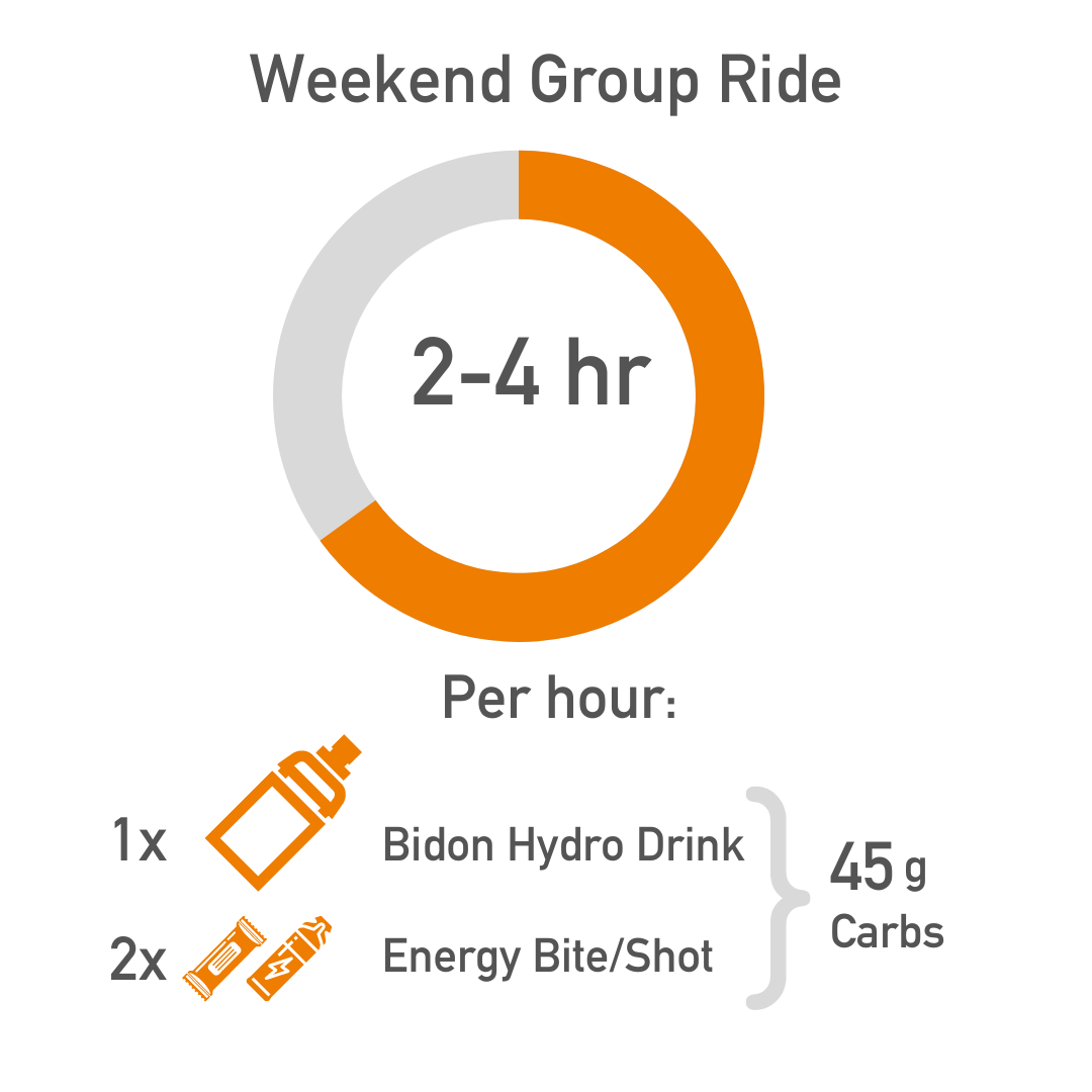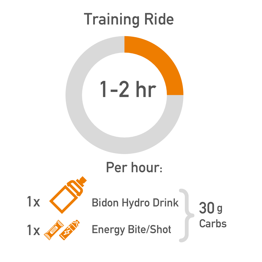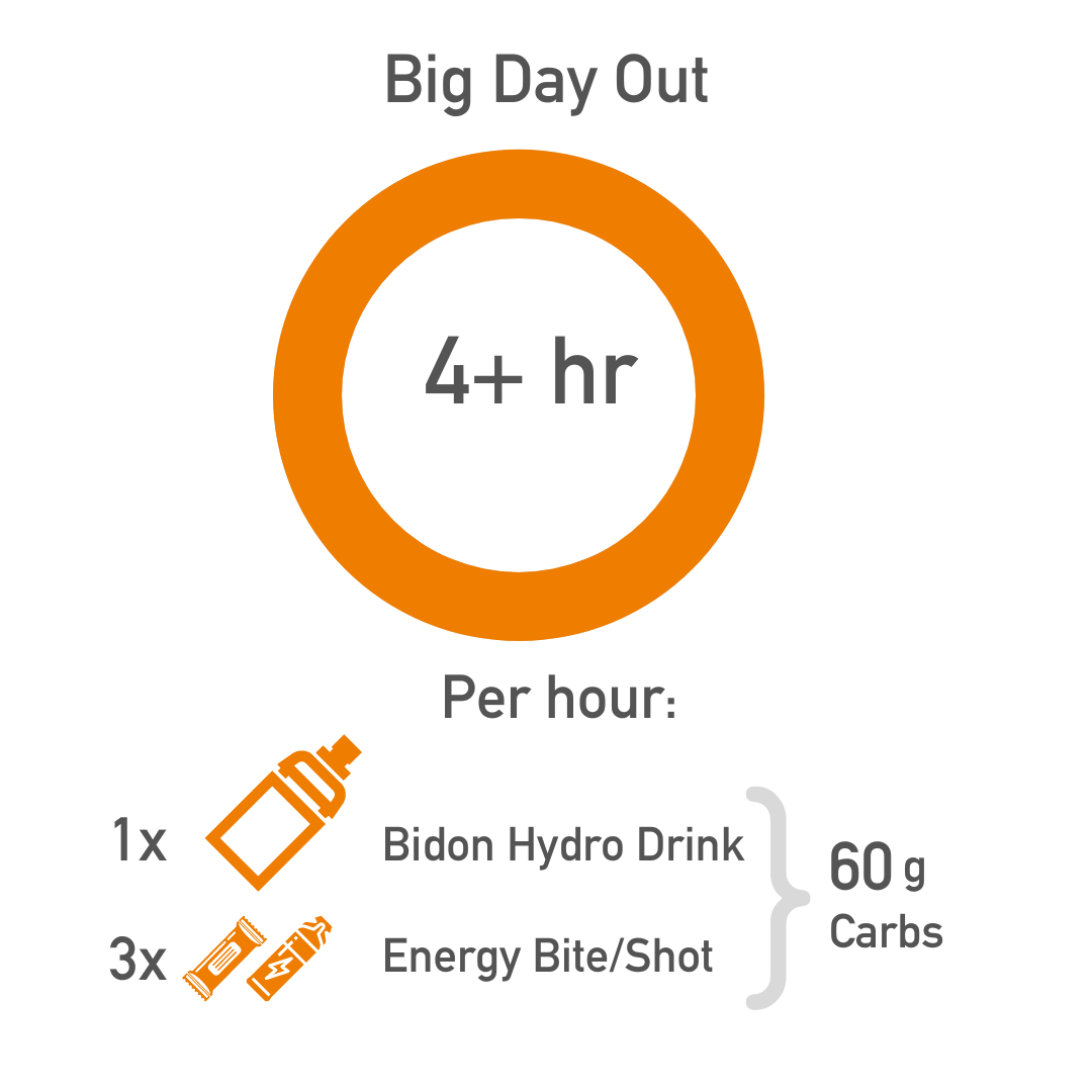 Each Bite, Shot or Drink contains around 15 grams of carbohydrates. Easy to combine, easy to plan — depending on what your body needs, and when it needs it.